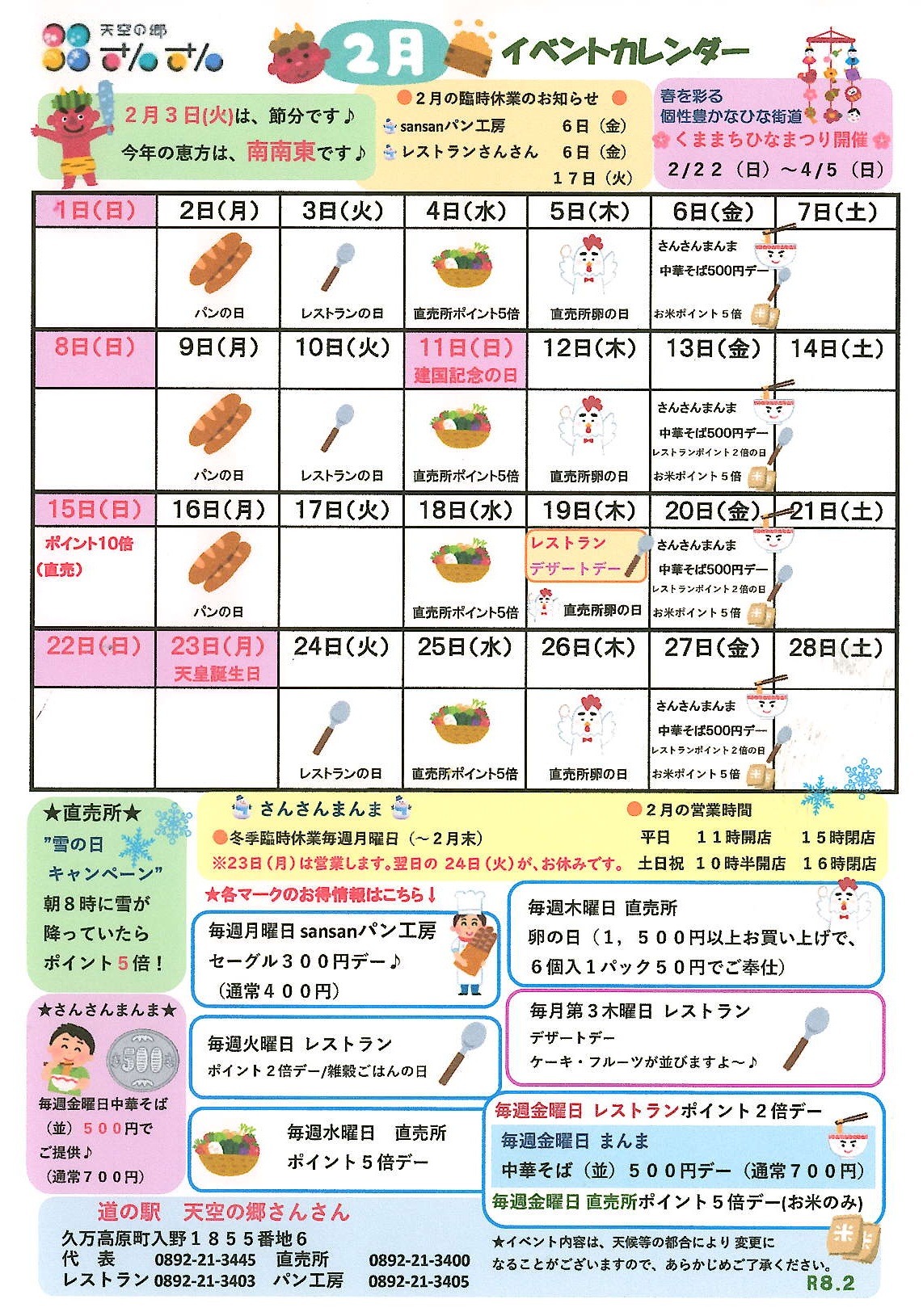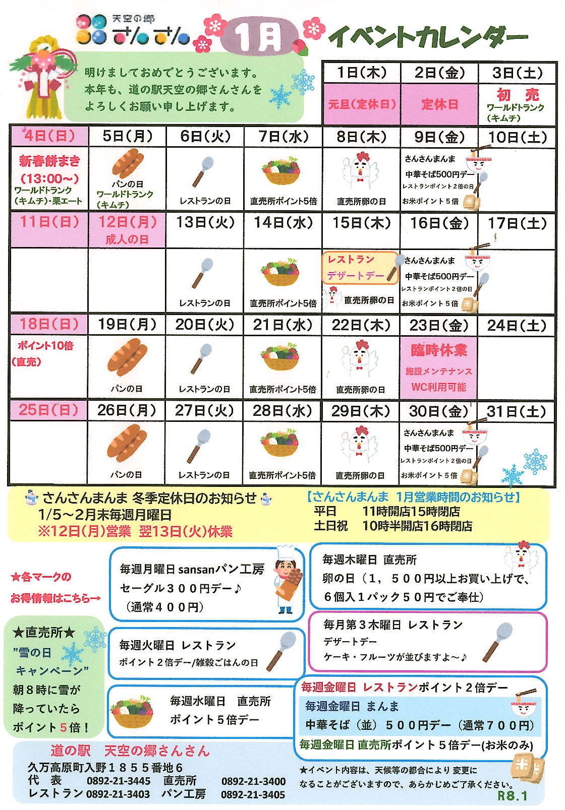 平素は道の駅天空の郷さんさんをご利用いただきありがとうございます。