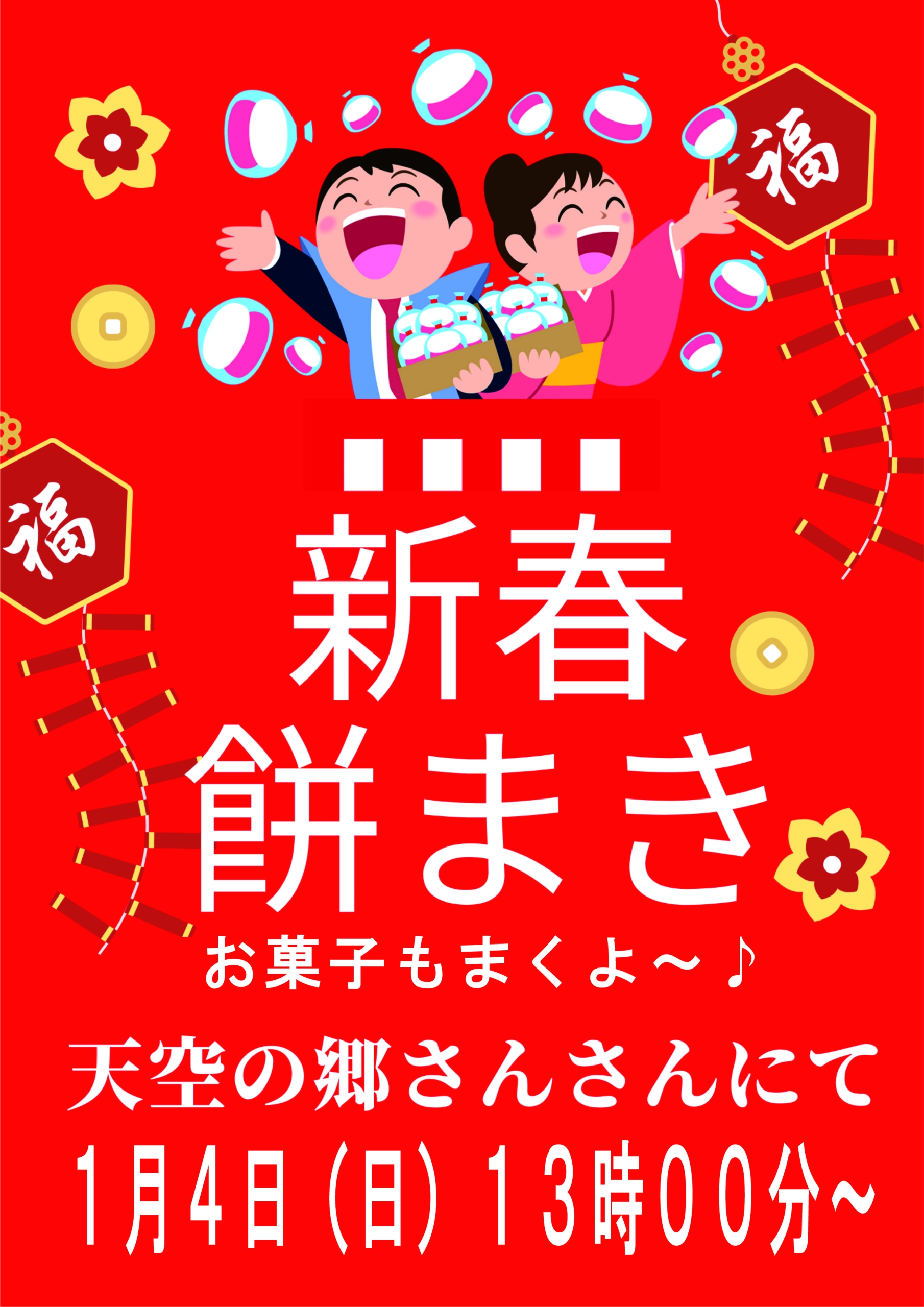 4日(日)13時より 新春餅まきを開催します♪お菓子もまくよ~(^▽^)/